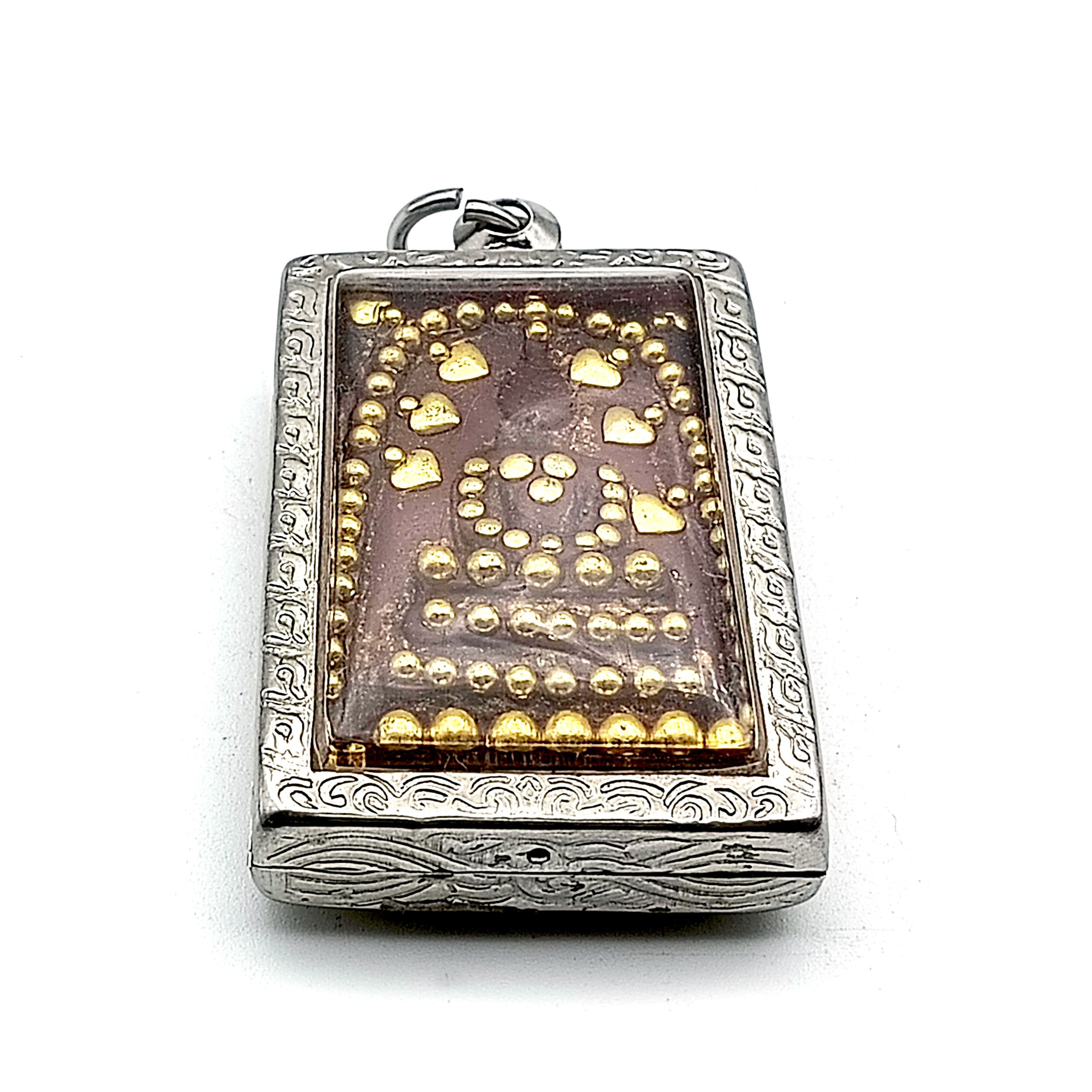 hra Khun Paen Takrut Thong はLuang Phor Timがデザインしたと思われるプラクルアンで、仏陀が瞑想するイメージに金のTakrutが何本も埋め込まれてています。