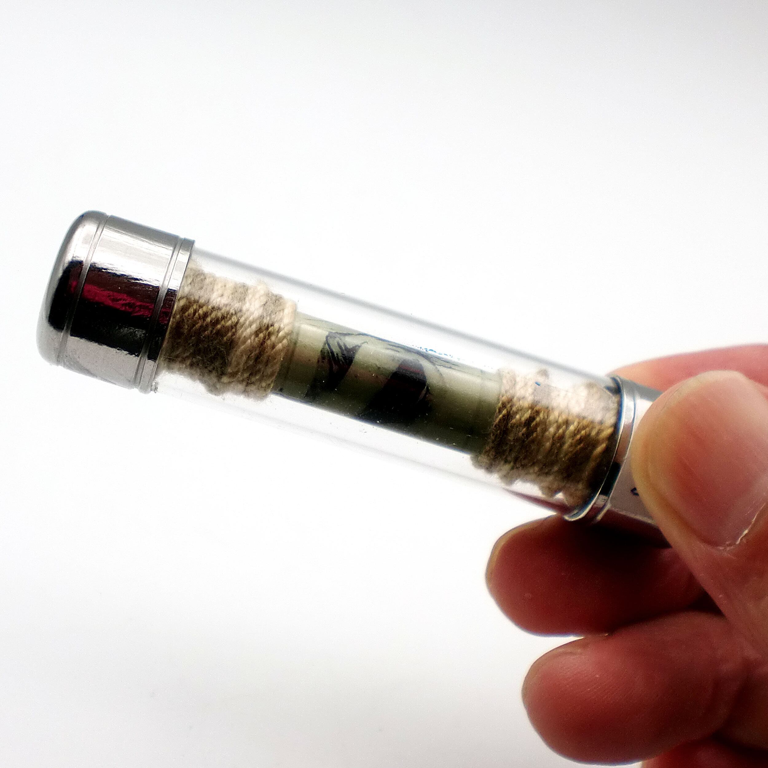 タクルット Takrutは筒状のお守りで、筒の中には経文(Yant)が記された高僧 Luang Phu Ngoenの写真が僧侶の祝福を受けたロープで巻かれています。